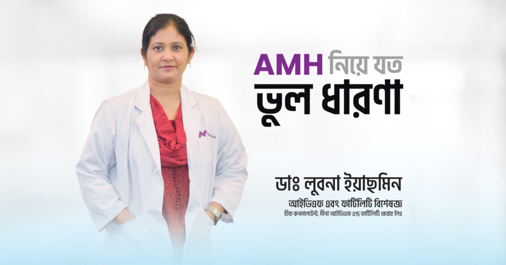 পঞ্চম যে ভুল ধারণাটা পেশেন্ট আমাদেরকে প্রায়ই জিজ্ঞাসা করেন যে আমার AMH এত কমে গিয়েছে আমার পক্ষে কি সুস্থ স্বাভাবিক বাচ্চা সম্ভব?  অর্থাৎ তারা চিন্তা করেন যে Low AMH হলে বাচ্চার জন্মগত ত্রুটি হবে কিনা? – না, AMH কম মানে আপনার ডিমের quantity কমে গিয়েছে অর্থাৎ রিজার্ভ কমে গিয়েছে। কিন্তু এইটা কোয়ালিটি নির্দেশ করে না।আমাদের একটা সুস্থ বাচ্চা হবে কিনা এইটা সবচেয়ে বেশি নির্ধারণ করে মেয়েদের বয়স। একই Low AMH নিয়ে ২৫ বা ৩০ বছরের মেয়ের বলতে গেলে জন্মগত ত্রুটি সম্পন্ন বাচ্চা হওয়ার সম্ভাবনা খুবই কম। আবার এই একই AMH নিয়ে বয়স যদি হয় ৪০ সেক্ষেত্রে জন্মগত ত্রুটি সম্পন্ন বাচ্চা হওয়ার সম্ভাবনা অনেক বেশি। অর্থাৎ জন্মগত ত্রুটি ব্যাপারটা নির্ভর করে বয়সের উপর। জন্মগত ত্রুটি বলতে সাধারণত structural যে problem গুলো হয় – হার্টে ছিদ্র, ঠোঁট কাটা বা হাতে অতিরিক্ত আঙ্গুল এই ব্যাপারগুলো নিয়ে আমাদের পেশেন্ট রা বেশি ভয় পান। তবে বলব যে আপনারা Low AMH  দেখে আপনাদের মনের মধ্যে এই ভয়টা নিবেন না যে আপনাদের সুস্থ বা স্বাভাবিক বাচ্চা হওয়া  সম্ভব কিনা। এই পুরো ব্যাপারটা আসলে একটা integrated চিন্তা অর্থাৎ অনেকগুলো কম্পনেন্ট একসাথে চিন্তা করে প্ল্যান করা বা একটা ডিসিশন এ পৌঁছা যে হ্যাঁ আপনার জন্মগত ত্রুটি সম্পন্ন বাচ্চা হওয়ার সম্ভাবনা বেশি বা কম। পুরোপুরি এটাকে কখনোই প্রতিরোধ করা সম্ভব না কিন্তু এইটা নিয়ে অনর্থক দুশ্চিন্তা করে আপনি আপনার যে চিকিৎসার সম্ভাবনা ছিল এটাকে বন্ধ করবেন না।