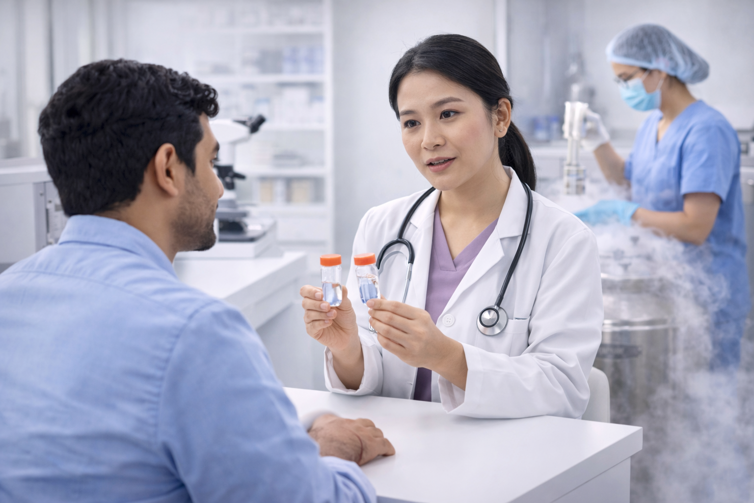 Semen freezing, also known as sperm cryopreservation, is a fertility preservation technique that allows men to store their sperm for future use. The sperm sample is carefully collected, processed, and frozen using advanced laboratory techniques so it can be preserved for many years.